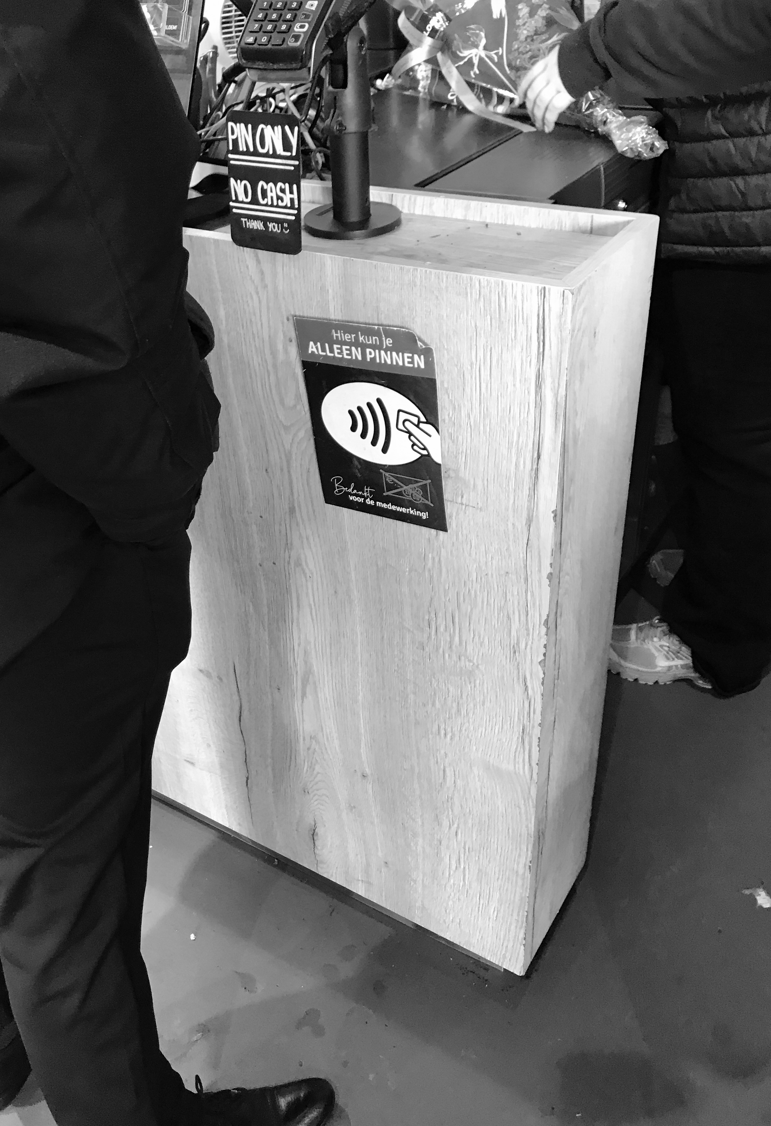 Een winkel in Utrecht, Nederland maakt naast communicatie materiaal dat door de overheid verspreid wordt, ook eigenhandig duidelijk dat hier cash geld niet welkom is.