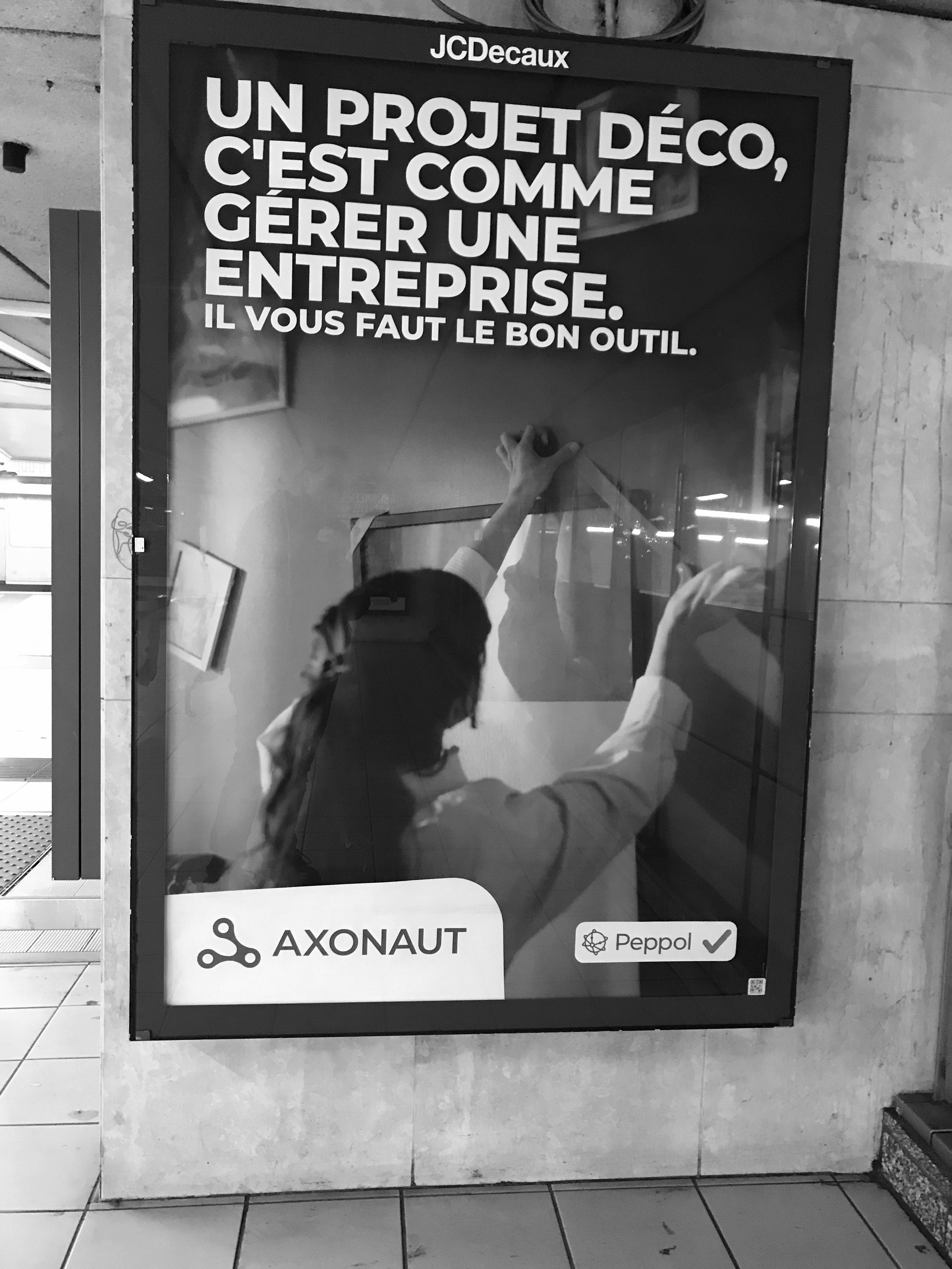 Een affiche voor een digitaal boekhoudprogramma dat klaar is voor de invoering van Peppol vergelijkt het runnen van een zaak met een doe-het-zelf project. Wie hangt er nu schilderijen op met plakband?